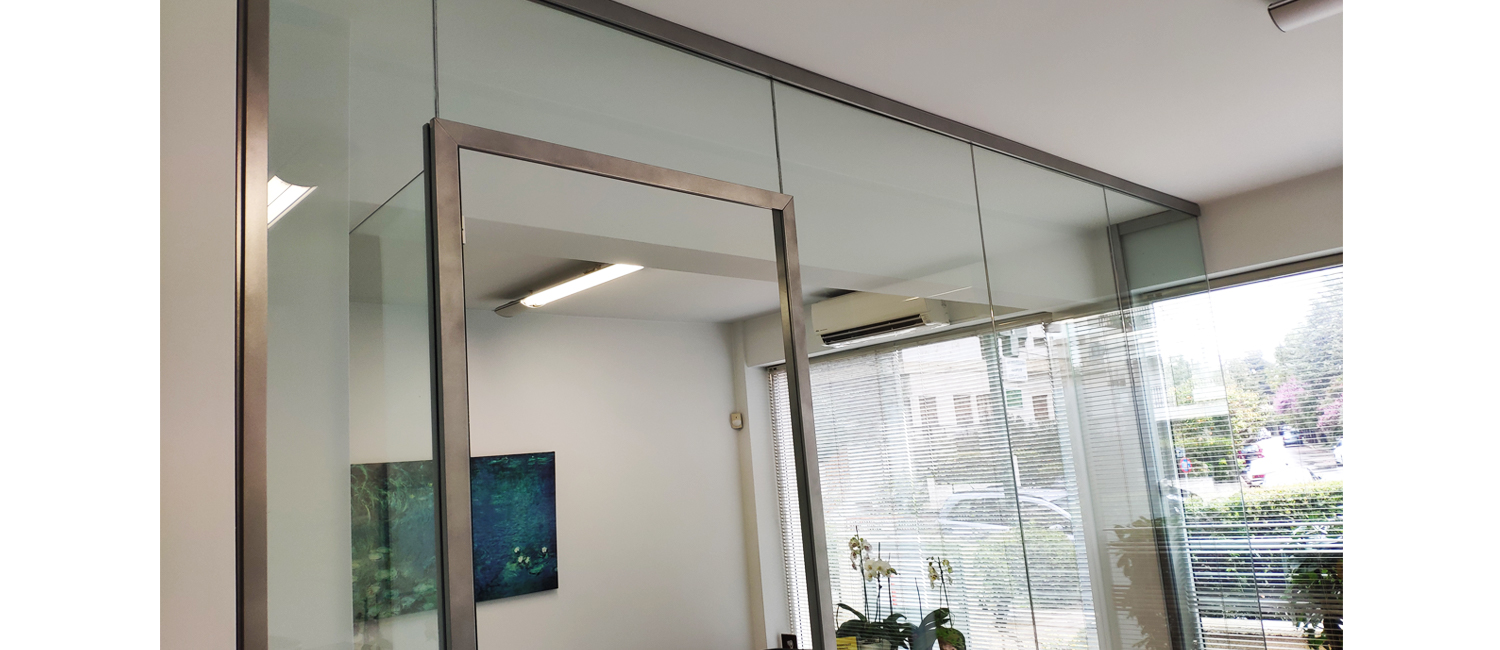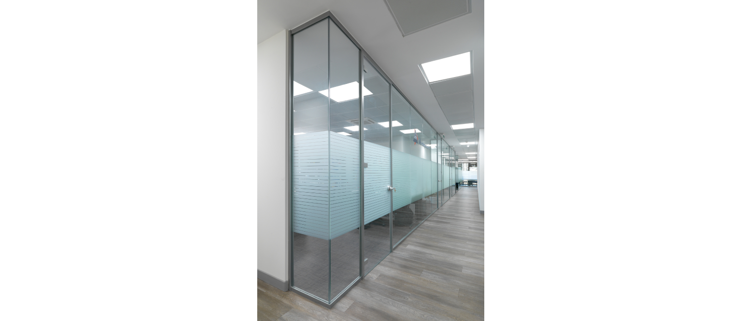 Σειρά διαχωριστικών Slim Line δαπέδου – οροφής, για απόλυτη διαφάνεια, minimal σχεδιασμό και άριστο αισθητικό αποτέλεσμα Το σύστημα προφέρεται με μονό κρύσταλλο triplex και σκελετό αλουμίνιου σε διάφορες αποχρώσεις ηλεκτροστατικής βαφής ή και σε αναδίωση.