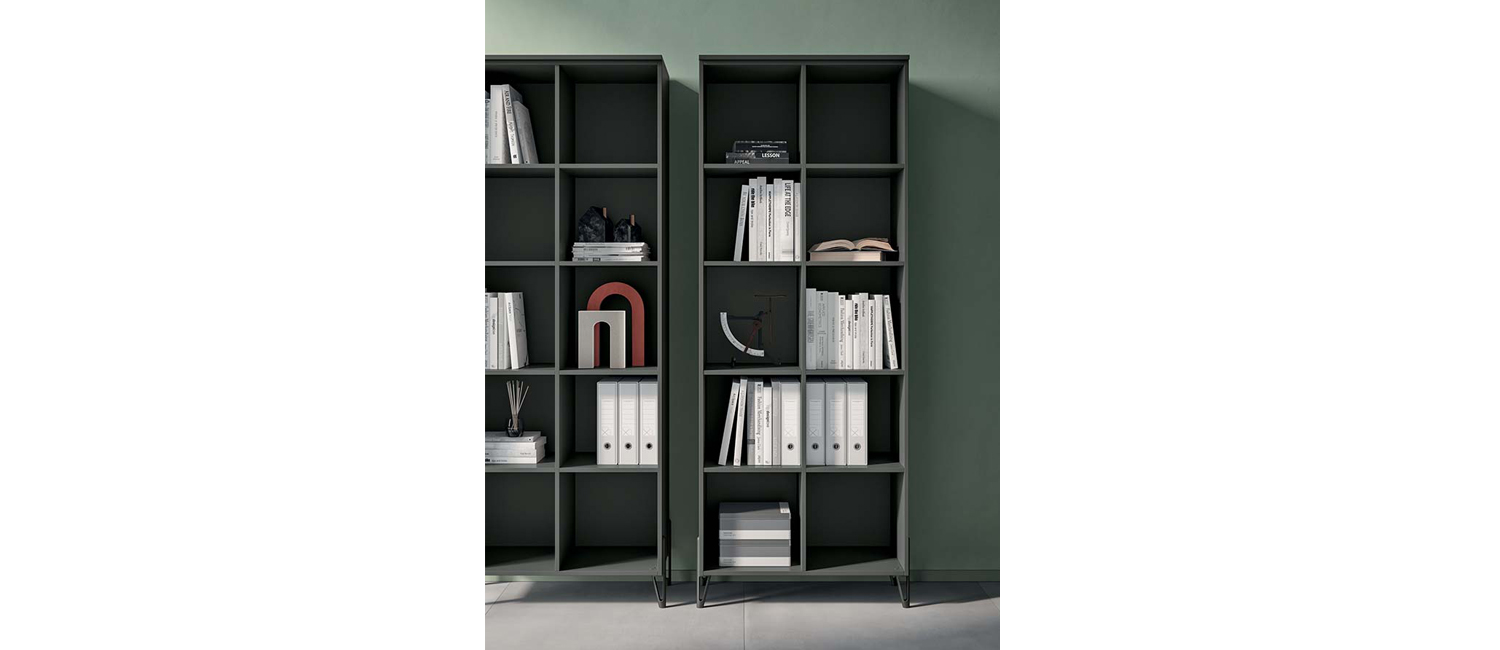 Το Zefiro είναι μια ανοιχτή βιβλιοθήκη με minimal και ελαφρύ σχεδιασμό, χάρη στα προφίλ που έχουν πάχος μόλις 18 mm, συμπεριλαμβανομένων των επιφανειών στήριξης.