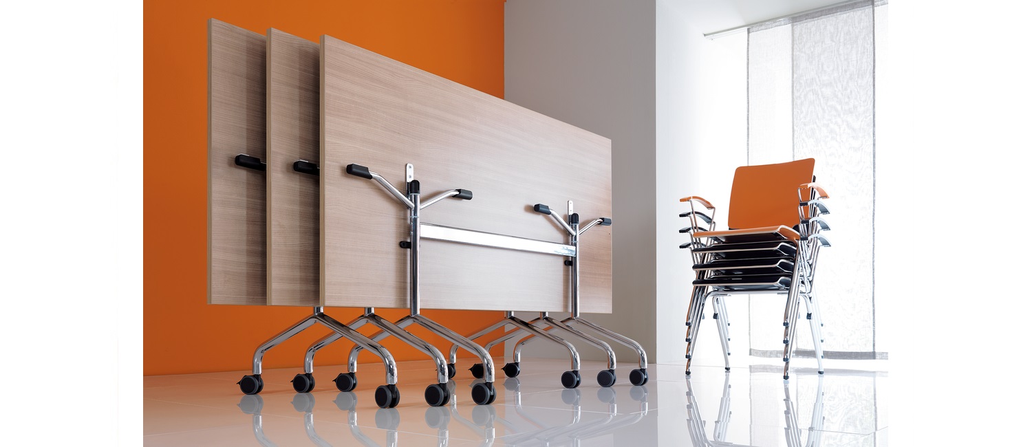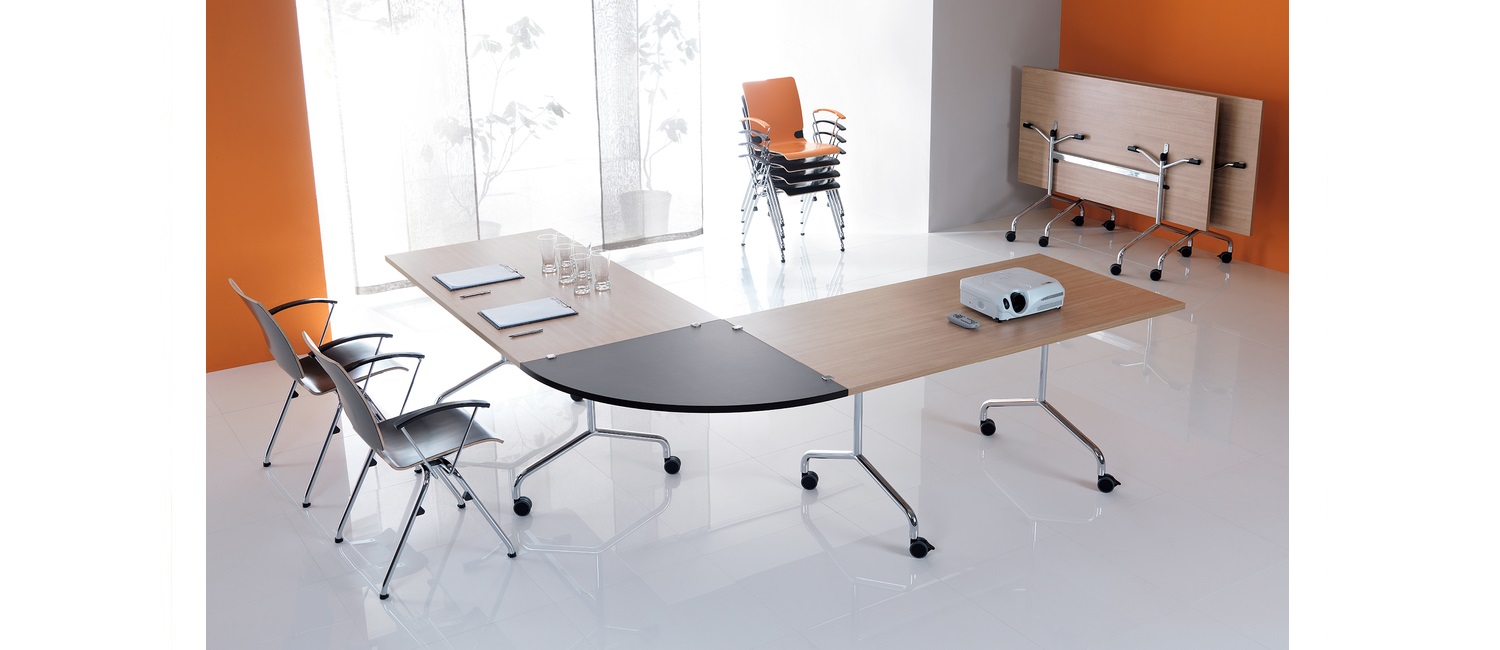 Η οικογένεια Flib είναι φορητά, πτυσσόμενα συνεδριακά τραπέζια, διαθέσιμα σε 5 διαφορετικά σχήματα, καθώς και 2 tabletops που χρησιμεύουν ως συνδετήρες για γωνίες 90 μοιρών. Η γρήγορη διεύρυνση του συνεδριακού χώρου είναι δυνατή χάρη στον συνδυασμό ορθογώνιων και οβάλ τραπεζιών.