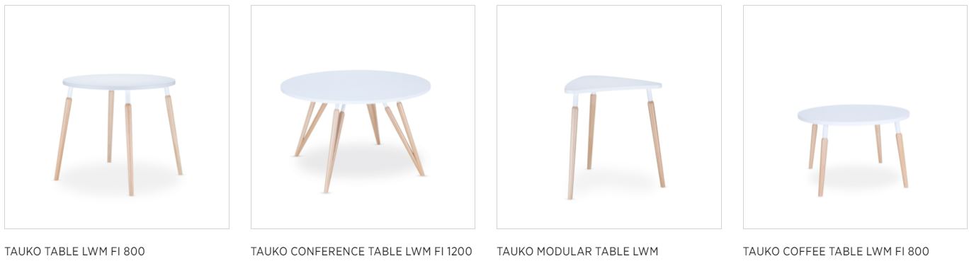 Μια ατμόσφαιρα σαν το σπίτι υποτίθεται ότι βελτιώνει την ευημερία των εργαζομένων και καθιστά τον χρόνο χαλάρωσης πιο αποτελεσματικό. Για να ικανοποιήσουμε αυτές τις ανάγκες, προσφέρουμε μια μοναδική σειρά από τραπέζια που ονομάζονται Tauko (που σημαίνει "ένα διάλειμμα", "μια παύση" στα φινλανδικά). Τα μαλακά υλικά και ο συνδυασμός άνεσης, ενδιαφέροντος σχεδιασμού και λειτουργικότητας βοηθούν στη δημιουργία μιας άνετης, οικιακής ατμόσφαιρας. Χάρη στην modularity τους, τα τραπέζια είναι επίσης τέλεια για αίθουσες συνεδρίων και αίθουσες προπόνησης.