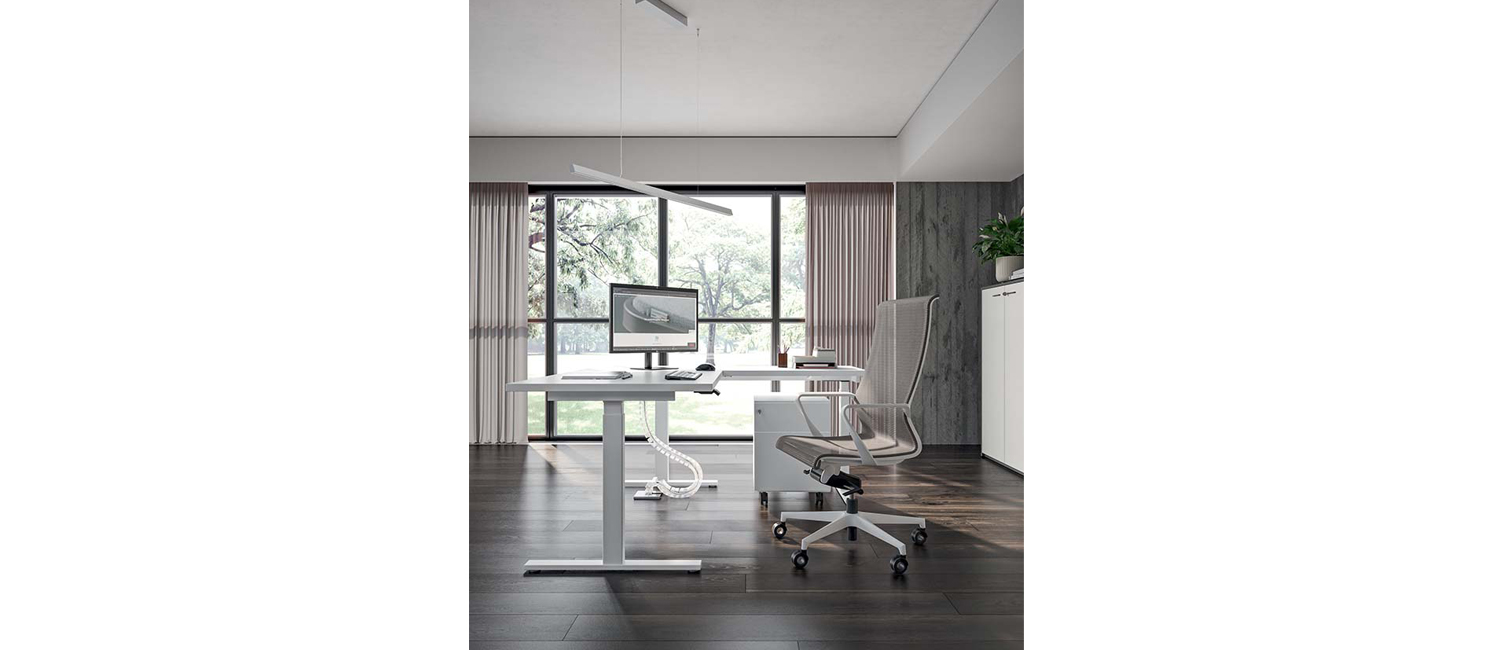 Ο έλεγχος με σύστημα up&down για την ρύθμιση ύψους του γραφείου είναι ενσωματωμένος στο γραφείο συνδυάζοντας άψογα την αισθητική και την καινοτομία και παρέχοντας ανώτερη ορθοστατική ευεξία με μια μικρή κίνηση.