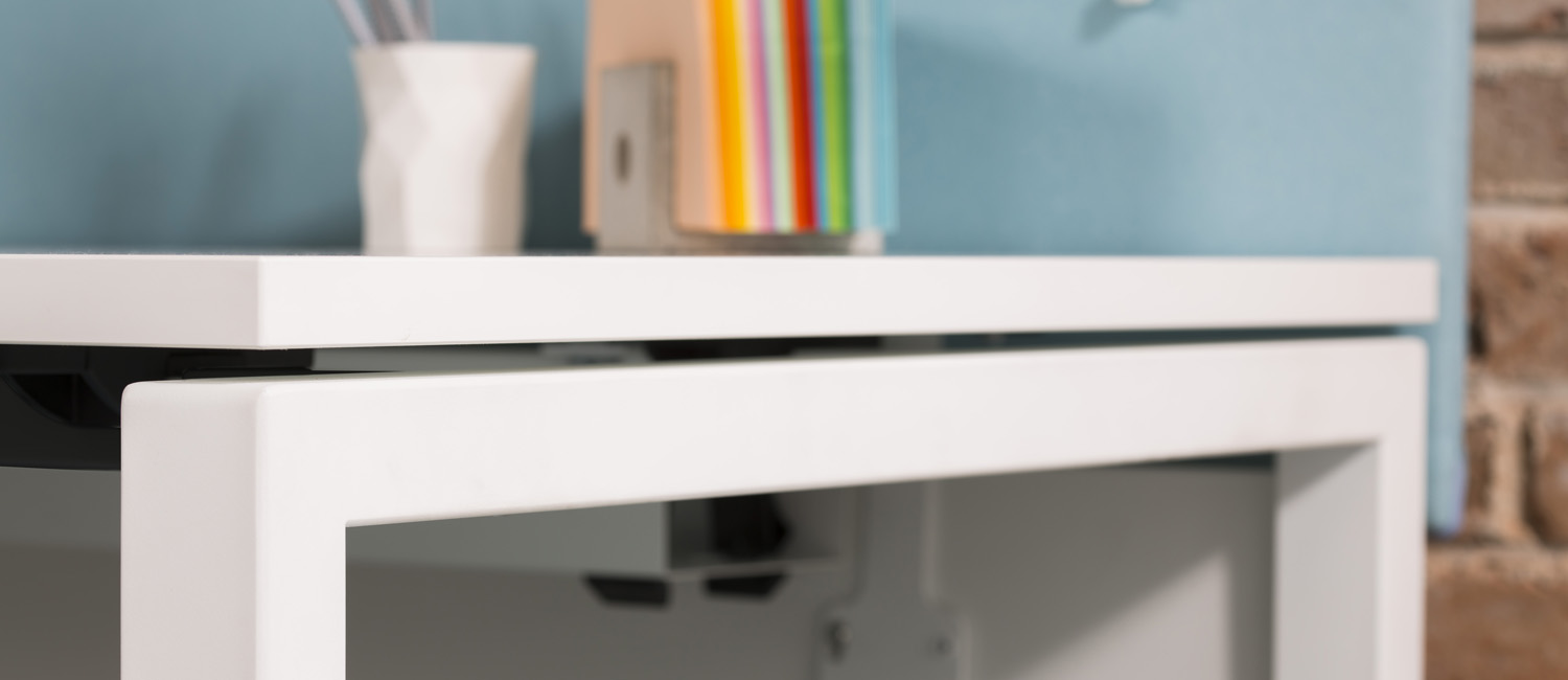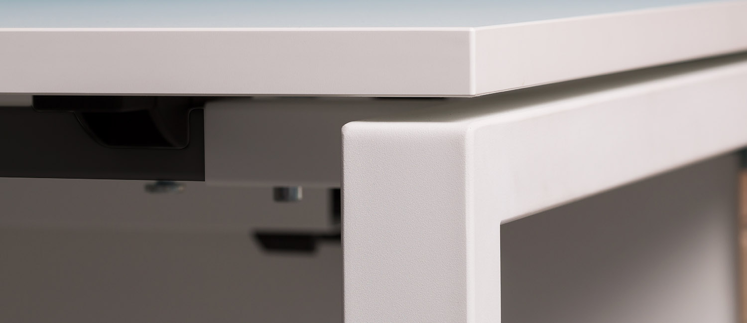Μπορείτε να επιλέξετε ανάμεσα σε 2 τύπους ποδιού και σε πολλούς χρωματικούς συνδυασμούς επιφάνειας και ποδιών, καθώς και σε λειτουργικές λύσεις, όπως η ολισθαίνουσα κορυφή, οι καλωδιώσεις και τα mediaports, επιτρέπουν την εύκολη προσαρμογή του χώρου εργασίας ανάλογα τις ανάγκες.