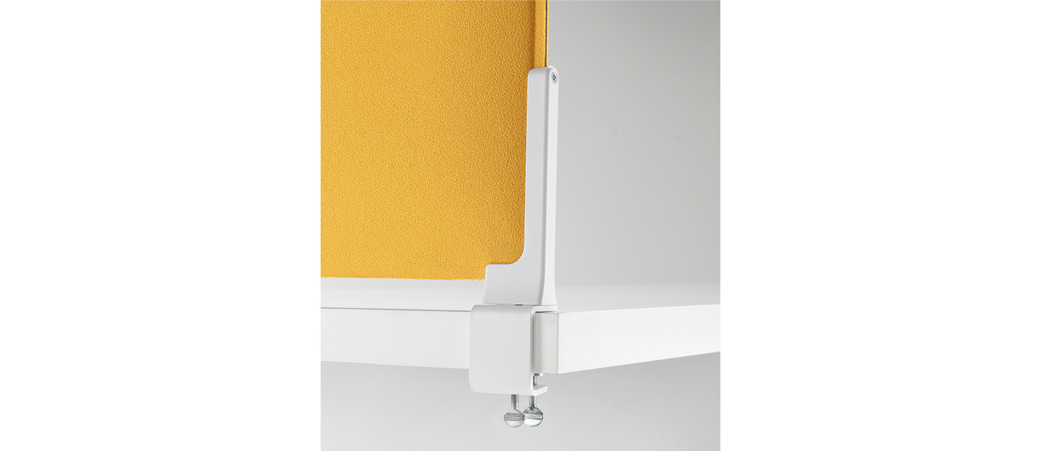 Corner system, which uses Snowsound technology panels, is an ideal way to divide up work surfaces by creating a visual barrier while also optimising acoustic comfort. A compact size, together with a robust construction, are the strengths of the mounting hardware that make it possible to apply Snowsound panels to the desk using clamps or directly to the desk with screws.