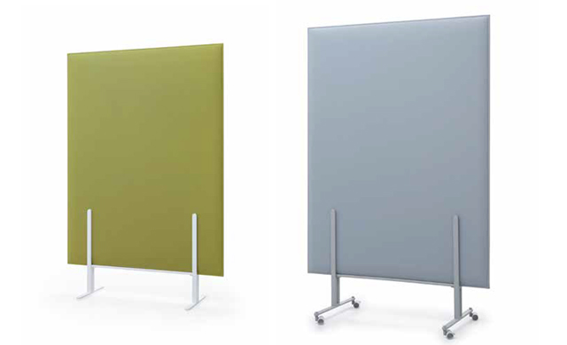 The Pli Over partitions, made with Snowsound technology, are available in the self-supporting versions or with bases fitted with casters to allow utmost flexibility in moving through the space.