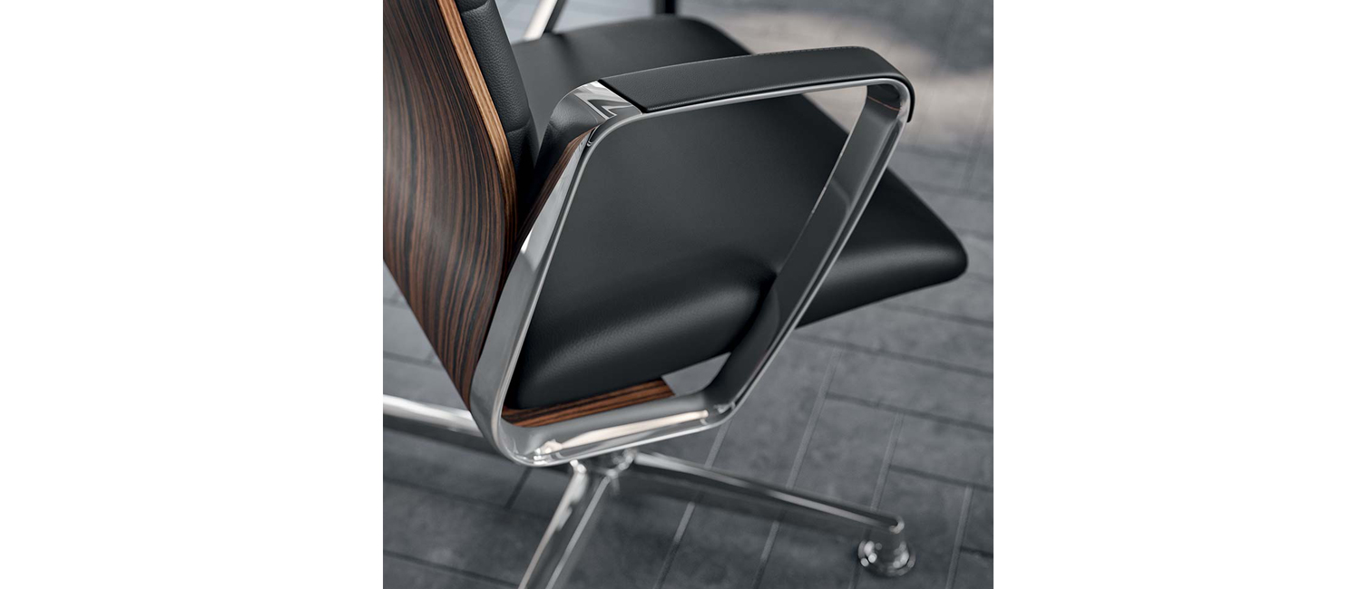 Οι βραχίονες αλουμινίου ολοκληρώνουν τη σχεδίαση της Directa, ολοκληρώνοντας την έντονη προσωπικότητα του ενώ μπορούν να επενδυθούν με δέρμα ώστε να ταιριάζουν με τα φινιρίσματα της πλάτης και του καθίσματος.