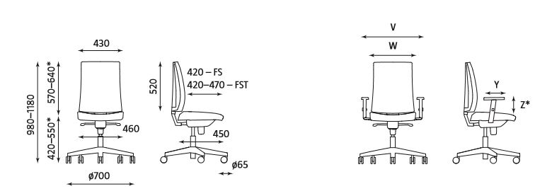 1. Ρύθμιση ύψους καθίσματος με αμορτισέρ(αντοχή βάρους 110 κιλά) .Ανατομικά σχεδιασμένη πλάτη με ρύθμιση ύψους πλάτης 7 εκ. η οποία προσαρμόζει την ανατομική καμπύλη σε κάθε σωματότυπο.