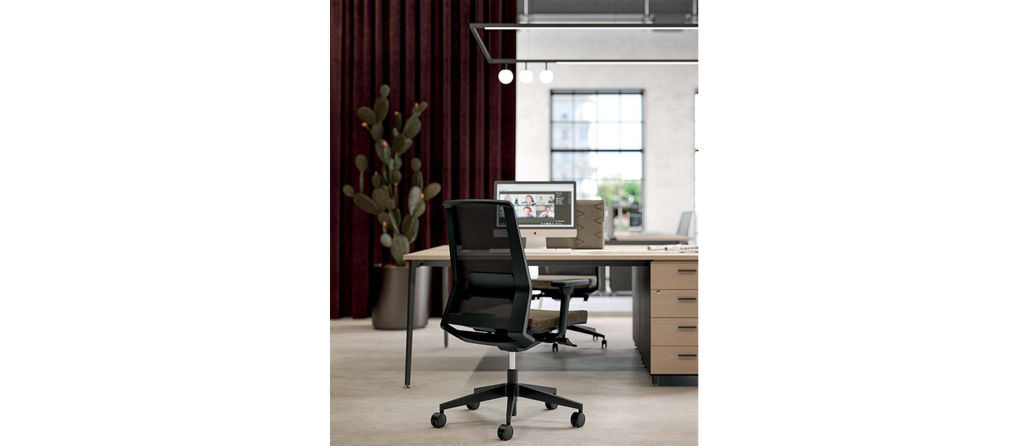 Η έκδοση total black mesh του Omnia, προτείνεται για τη δημιουργία επαγγελματικής ατμόσφαιρας σε βιομηχανικούς, μοντέρνους ανοιχτούς χώρους και κλασικούς χώρους γραφείων. Μια επαγγελματική πινελιά, που καθορίζει την ατμόσφαιρα και τον τρόπο εργασίας της εταιρείας.