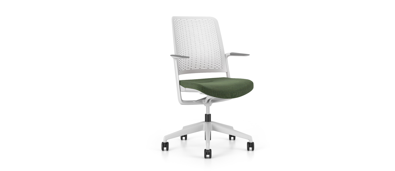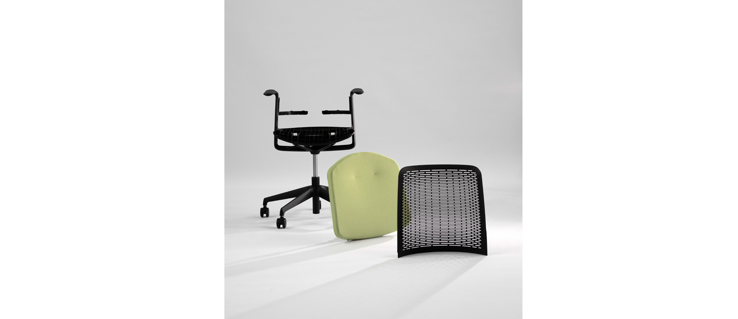 Η κατασκευή του από υλικά φιλικά προς το περιβάλλον το καθιστά ένα προϊόν με υψηλή περιβαλλοντική συνείδηση και εξαιρετικά χαμηλό βάρος. Αποτελείται από τρία βασικά στοιχεία, την έδρα με υφασμάτινη επένδυση, τα ενσωματωμένα στο σκελετό μπράτσα και τη διάτρητη πλάτη από πολυαμίδιο, η οποία προαιρετικά δέχεται υφασμάτινο pad σε πλήθος χρωμάτων.