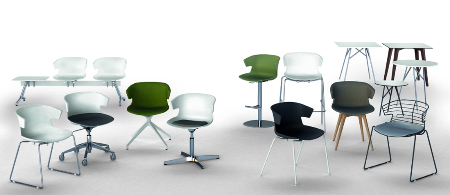 To κάθισμα είναι σχεδιασμένο από την Dorigo Design και διατίθεται σε πολλές παραλλαγές είτε απλών καθισμάτων είτε σε μορφή πάγκου, με πολλές επιλογές προσαρμογής στις βάσεις, όπως sled, τέσσερα πόδια και τροχήλατα.