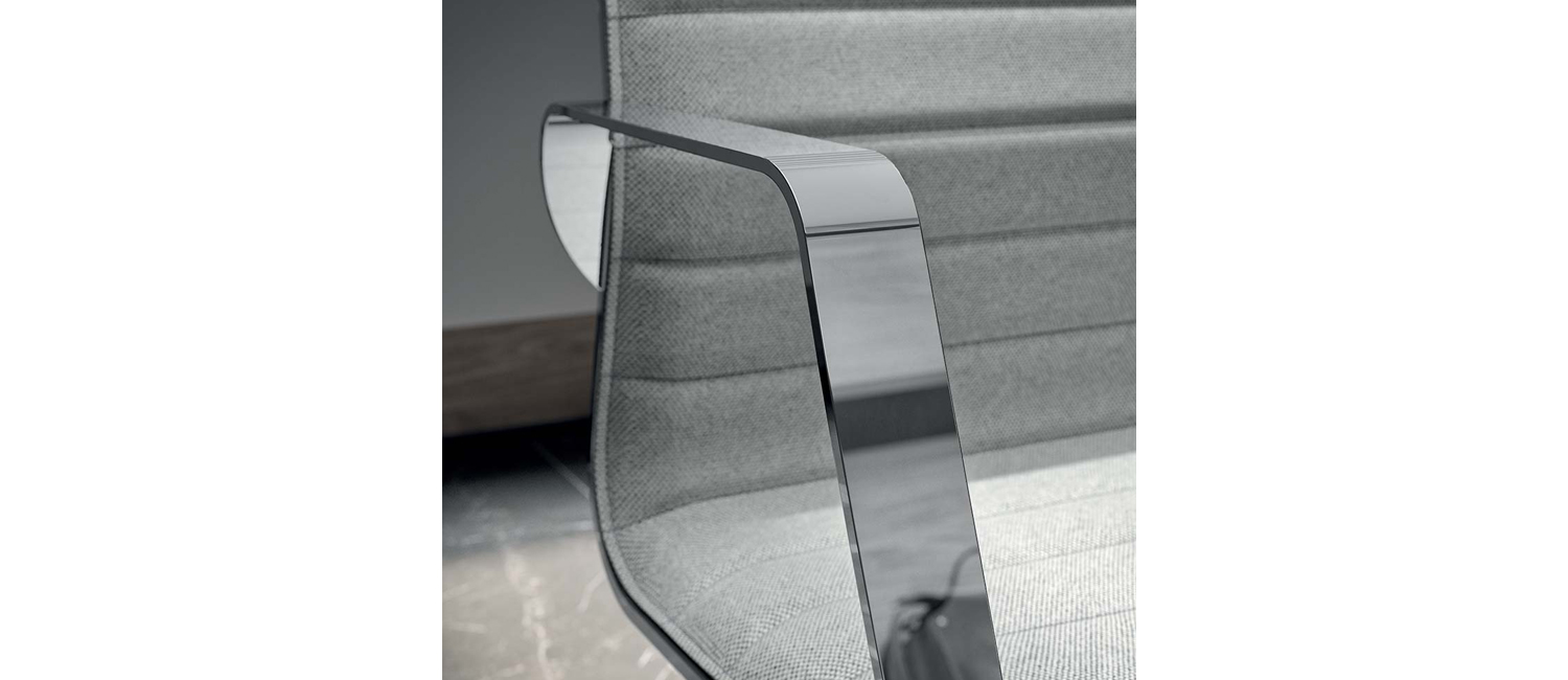 Για ένα ματ, απαλό και πολυτελές αποτέλεσμα, τα υποβραχιόνια μπορούν να καλυφθούν με δέρμα: ένα χαρακτηριστικό χάδι που μπορείτε να νιώσετε με τα χέρια σας, κάνοντας αυτό το κάθισμα πραγματικά μοναδικό.
