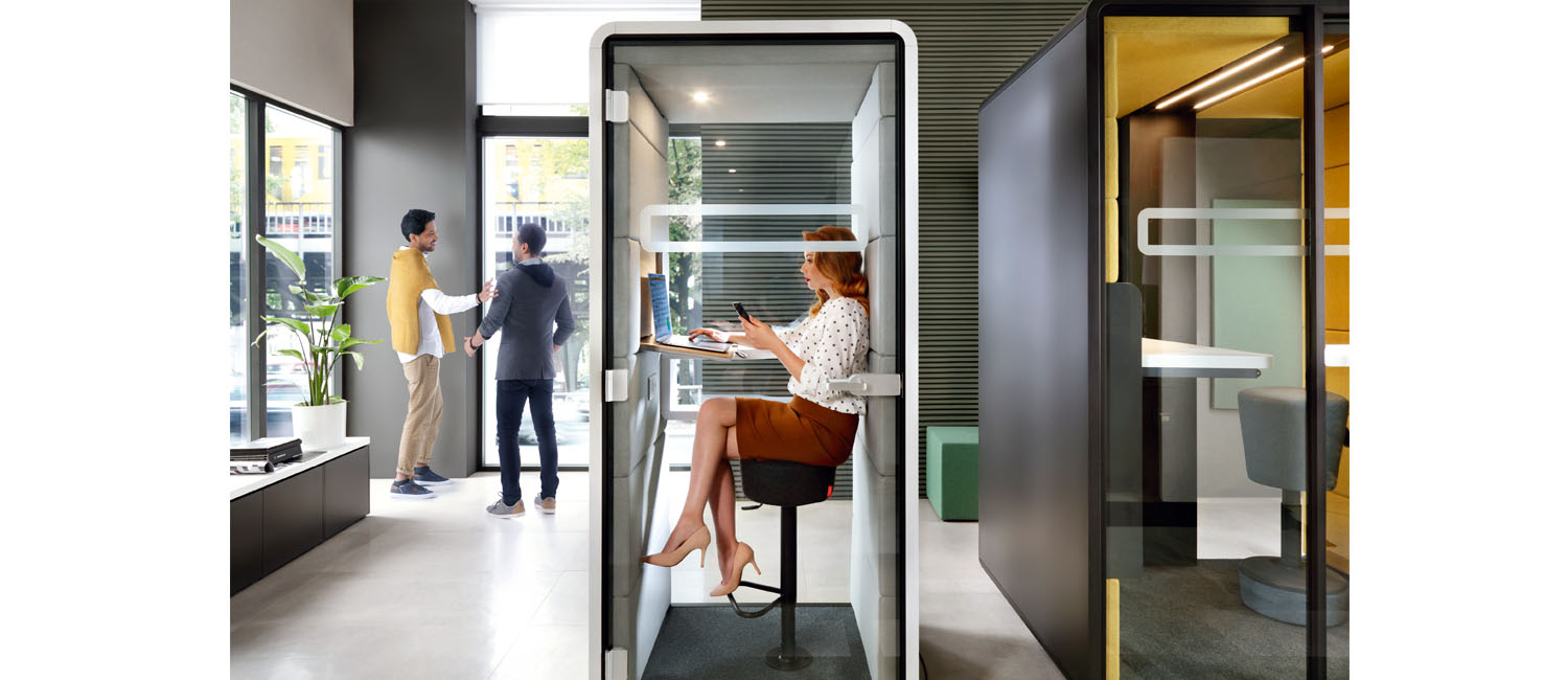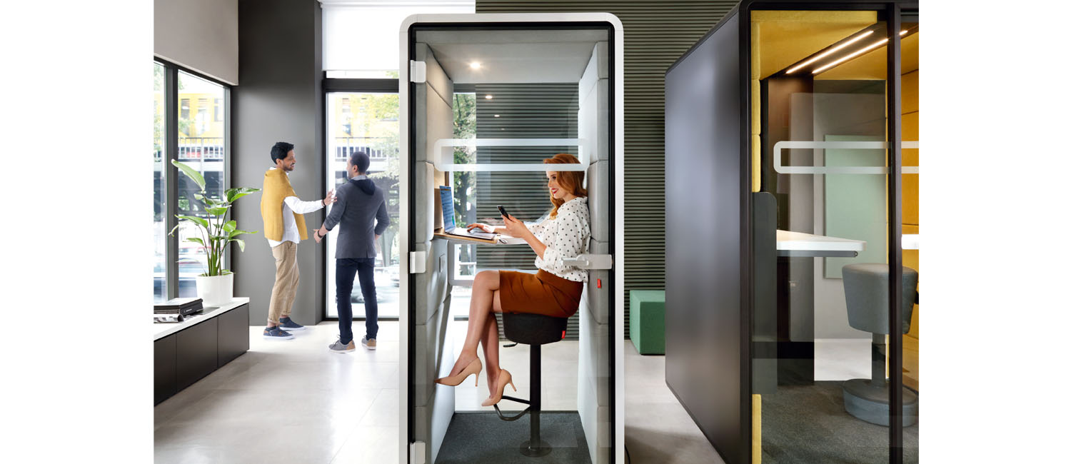 To HushPhone booth ξεχωρίζει χάρης το μικρό μέγεθος του που σε συνδυασμό με την υψηλή λειτουργικότητα του, το καθιστά ικανό να ικανοποιήσει τις ανάγκες κάθε οργανισμού. Πλήρως εξοπλισμένο με επιφάνεια εργασίας , συστήματα εξαερισμού και όλο τον απαραίτητο ηλεκτρικό εξοπλισμό. Προσφέρει υψηλά επίπεδα ηχομόνωσης και ηχοαπορρόφησης.
