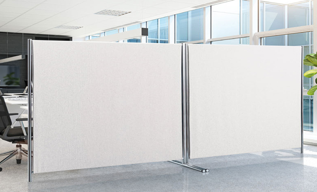 Διαχωριστικά απορρόφησης ήχου φτιαγμένα με υφάσματα Snowsound Fiber 1 βακτηριοστατικά Trevira βιοδραστικά. Επιχρωμιωμένες μεταλλικές σωληνοειδούς σχήματος βάσεις επιτρέπουν την τοποθέτηση πολλών διαχωριστικών στη σειρά ή και σε γωνία. Η βάση διαθέτει επίσης τροχούς στα άκρα της που επιτρέπουν την εύκολη κίνηση. Το υφασμάτινο κάλυμμα είναι αφαιρούμενο.