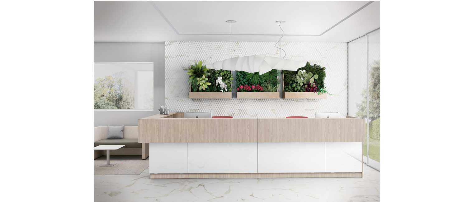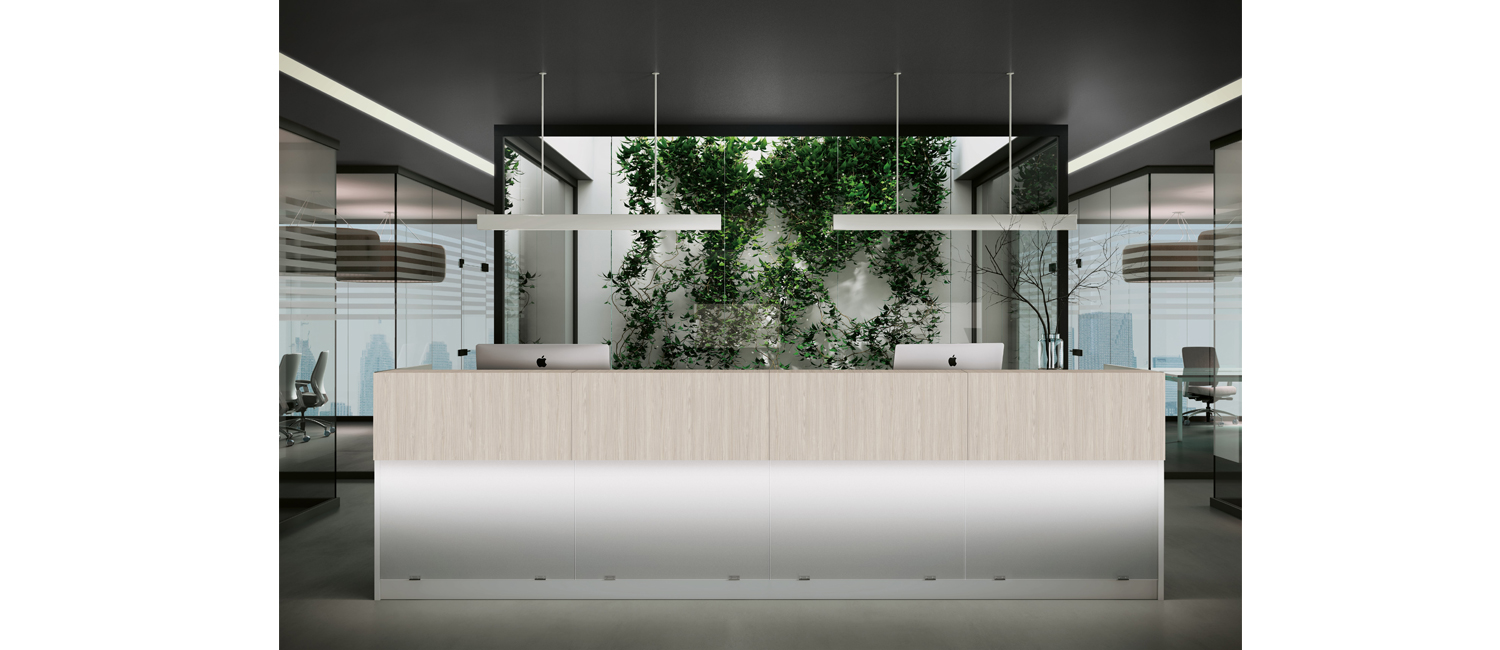 Η reception Lodge αποτελείται από διαφορετικά στοιχεία που επιτρέπουν πλήθος διαμορφώσεων ανάλογα με τις ανάγκες κάθε χώρου.