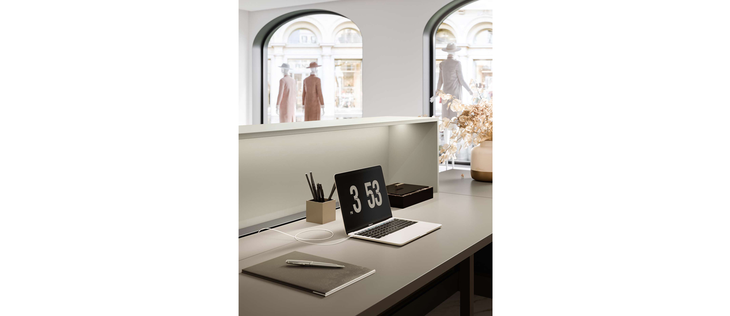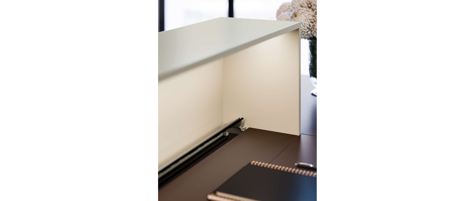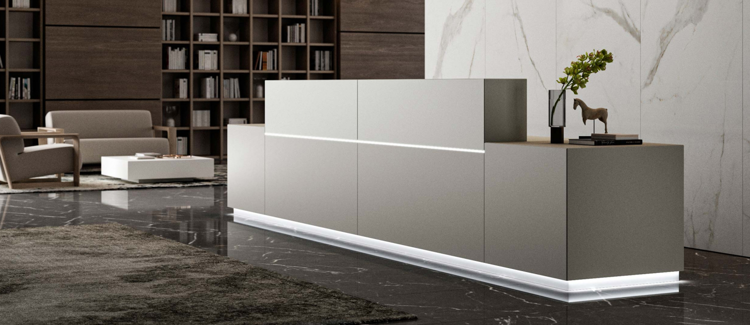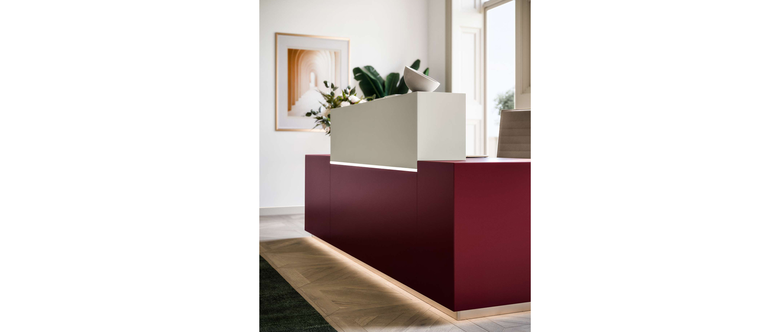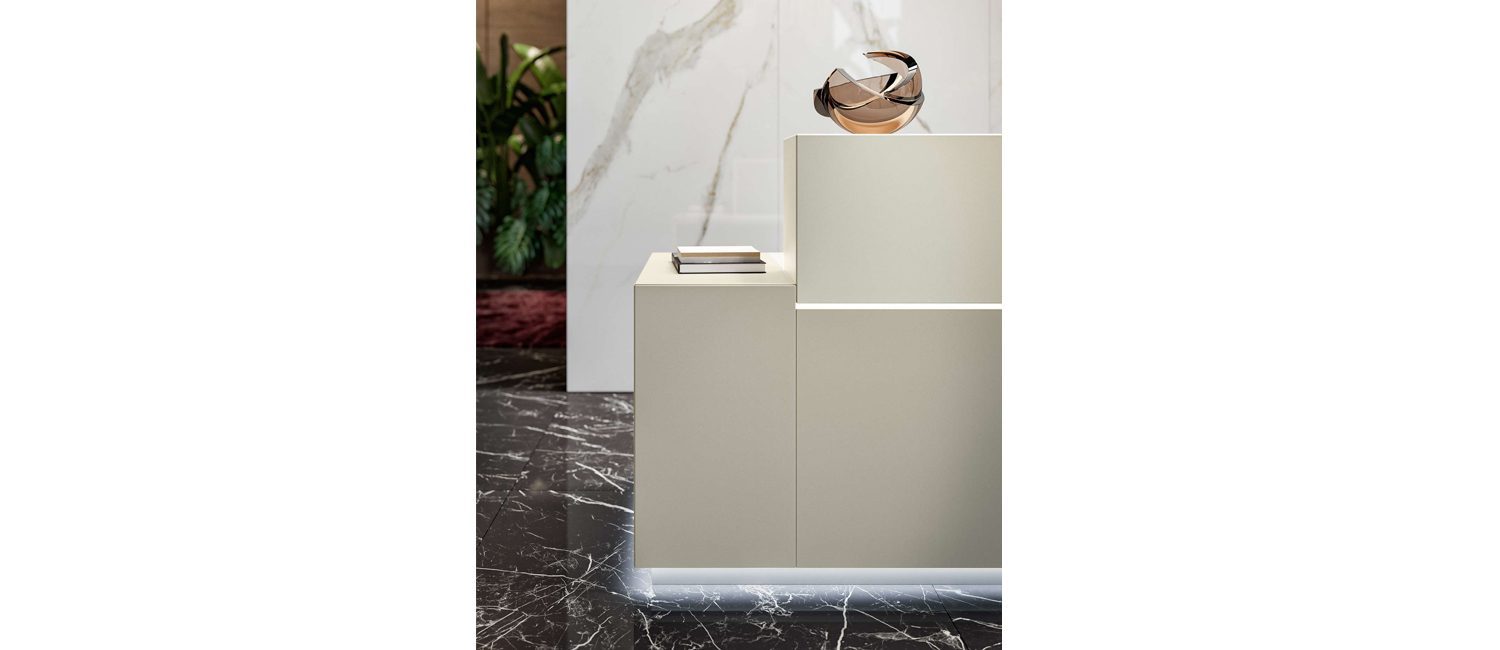 Ο φωτισμός είναι ένα βασικό χαρακτηριστικό του Z1: Η λιτή γεωμετρία των γραμμών τονίζεται από λωρίδες led, οι οποίες ορίζουν τις επιμέρους μονάδες και ενοποιούν ιδανικά το κύριο σώμα της reception και της βάσης.