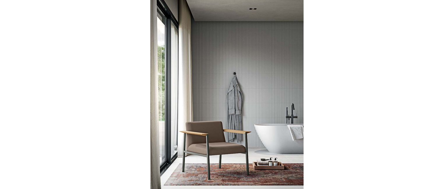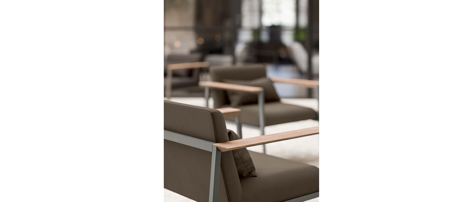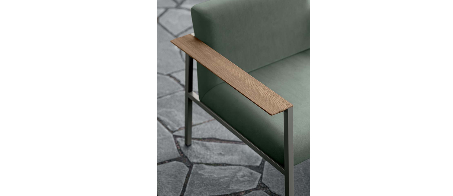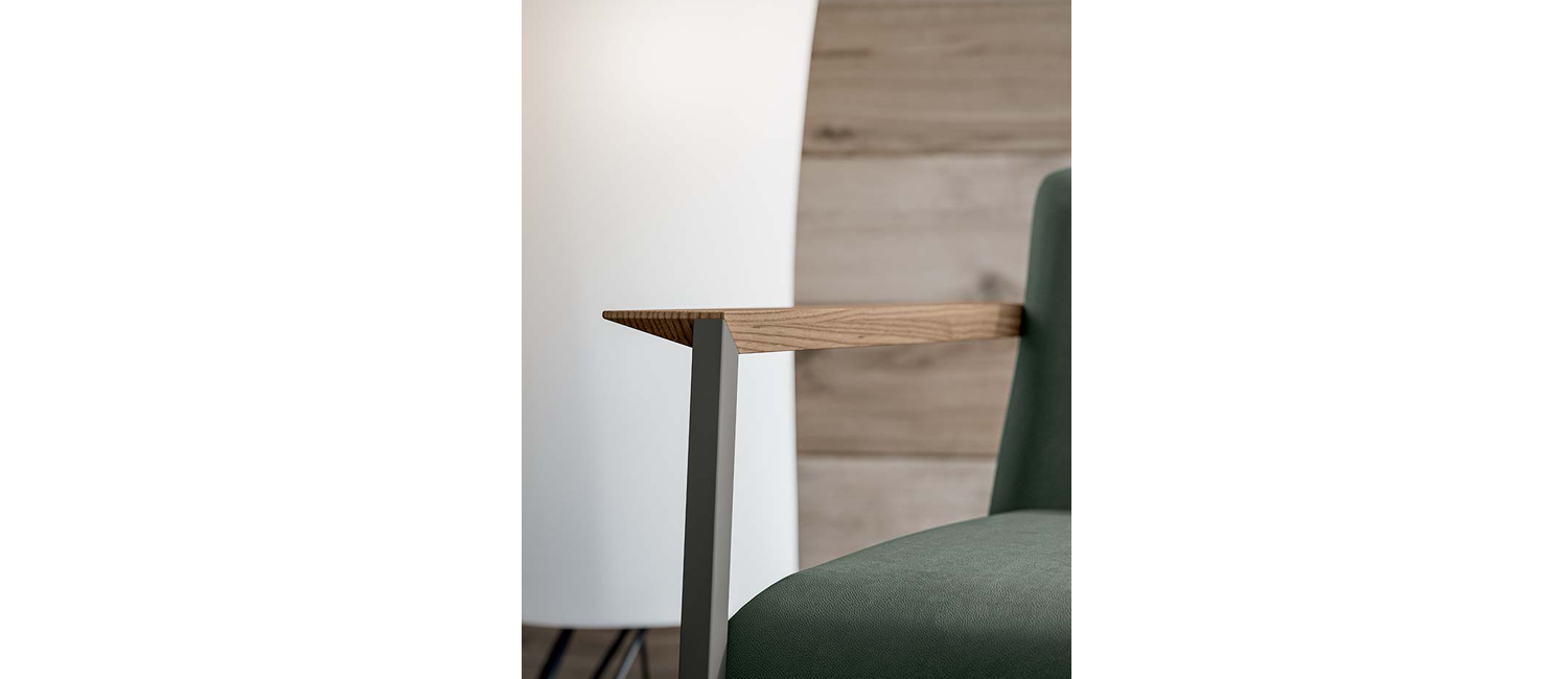 Τα ξύλινα υποβραχιόνια έχουν ένα ιδιαίτερο σχήμα: έναν όγκο φτερού που λεπταίνει προς το «εξωτερικό, δημιουργώντας ένα δυναμικό εφέ εξασφαλίζοντας παράλληλα άνετη στήριξη.
