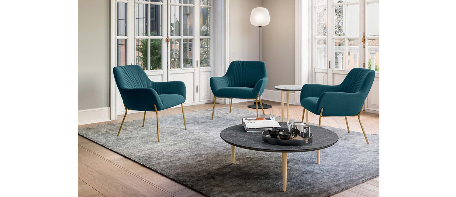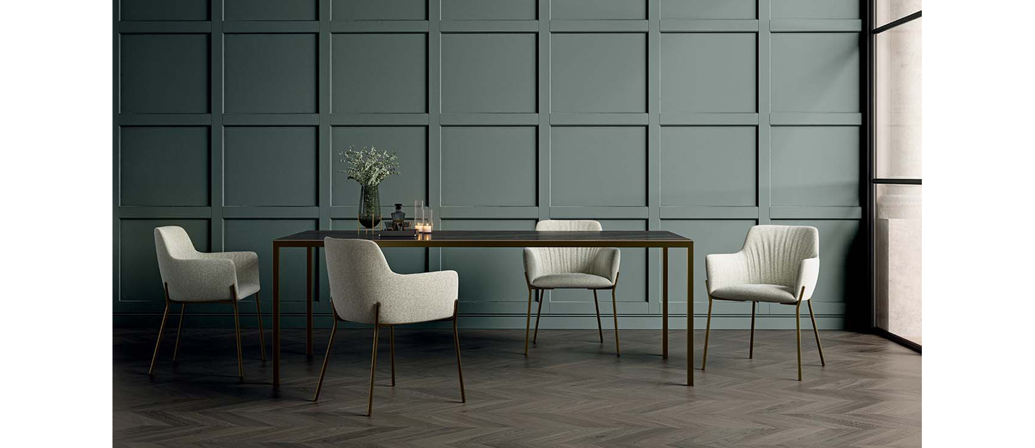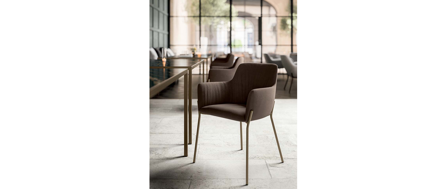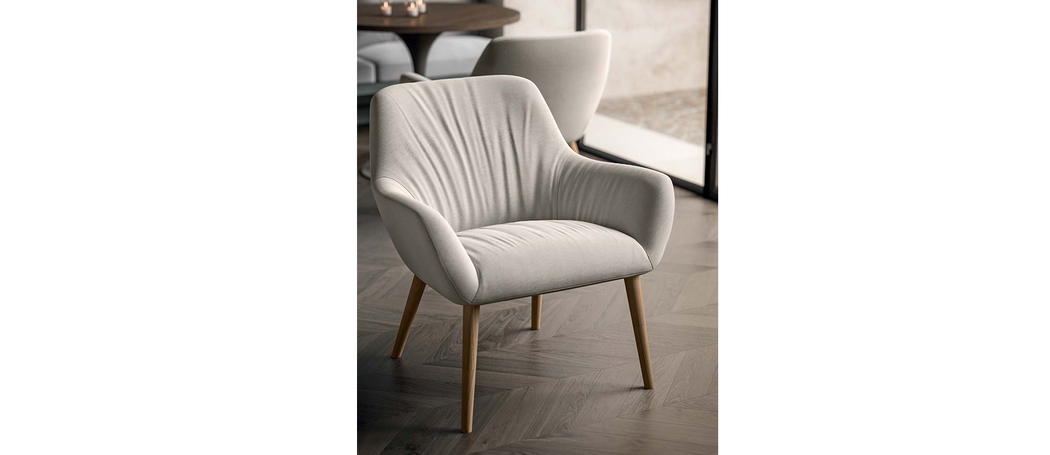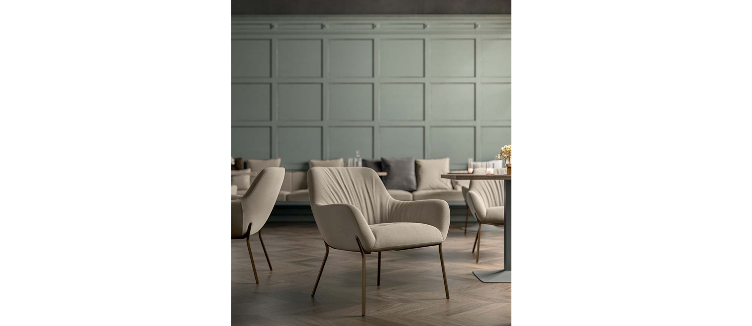Το κάθισμα, φιλόξενο και κομψό, δίνει στους χώρους μια εκλεπτυσμένη και σαγηνευτική εμφάνιση, σε συνδυασμό των ξύλινων ή μπρούτζινων ποδιών του, που προσθέτουν μια πολυτελή πινελιά.