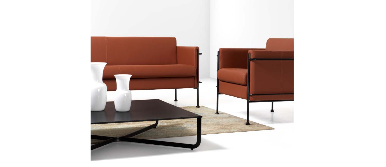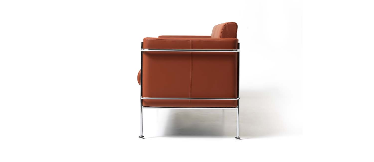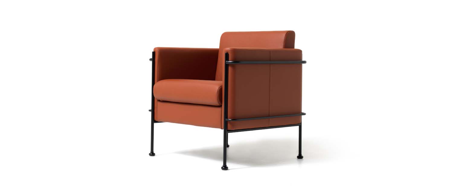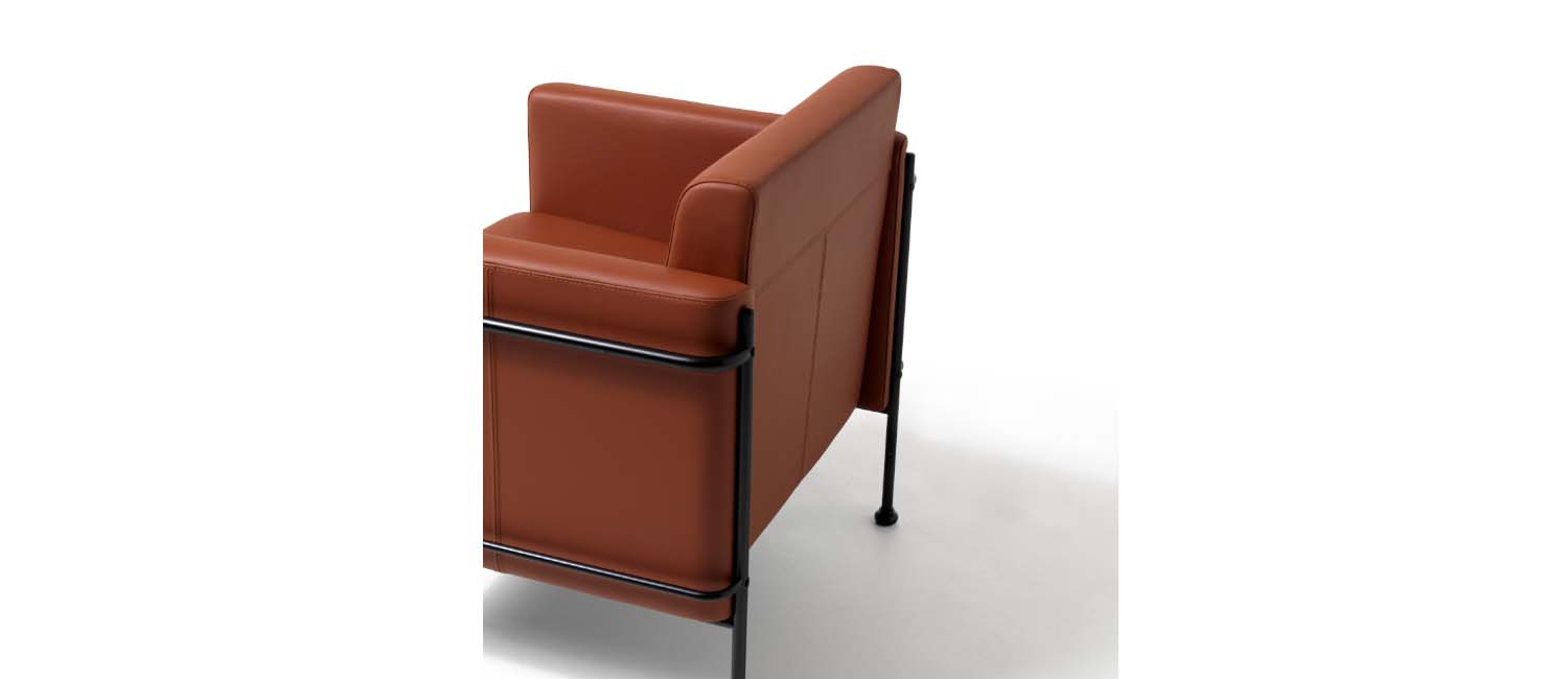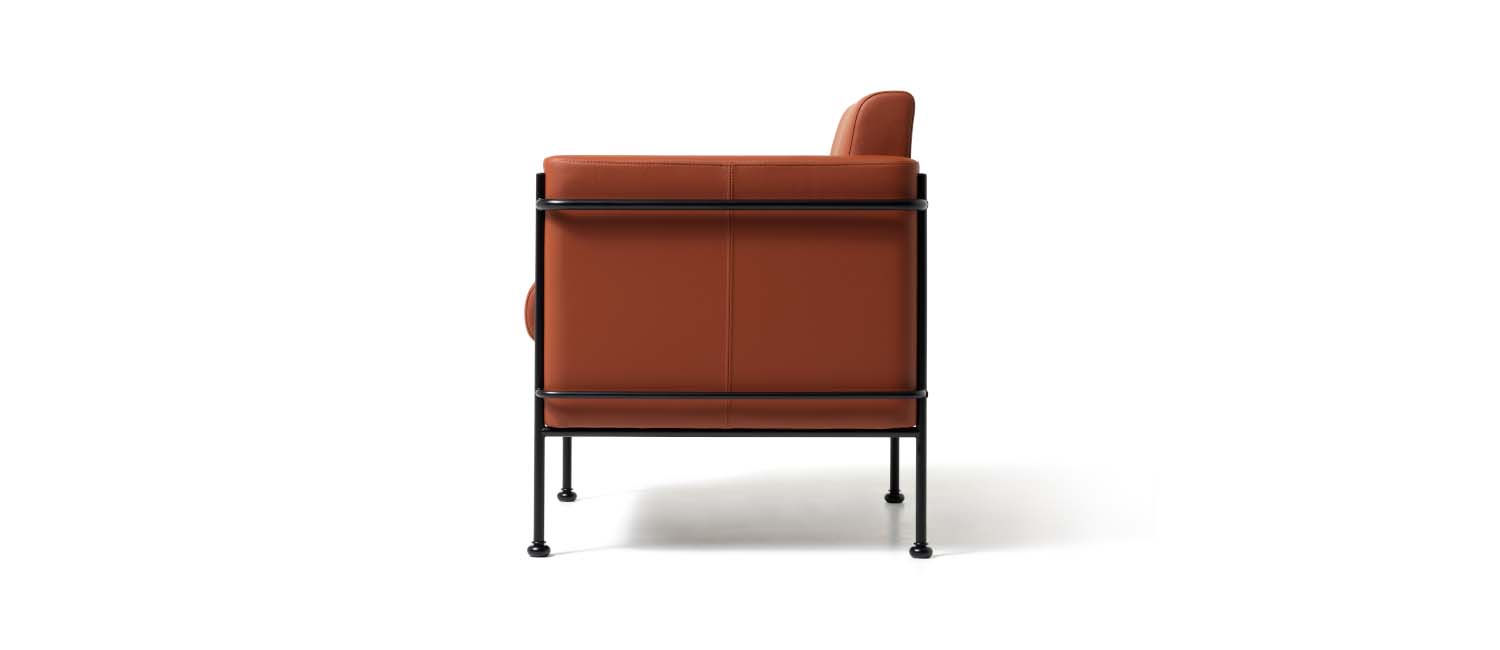 Το πλαίσιο στήριξης είναι διαθέσιμο σε χρωμιωμένο ή μαύρο ματ λακαρισμένο ατσάλι, με κομψά στρογγυλεμένα πόδια που τραβούν την προσοχή και εξισορροπούν τη γραμμικότητα του σχεδίου και της ταπετσαρίας.