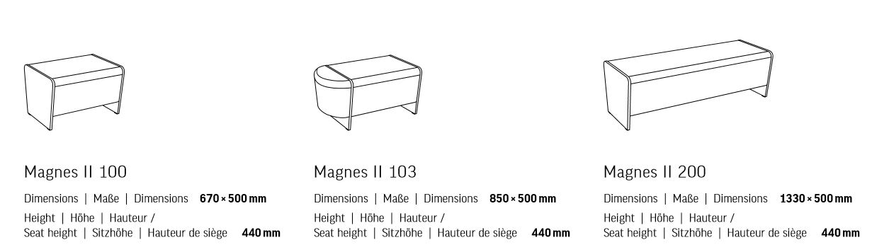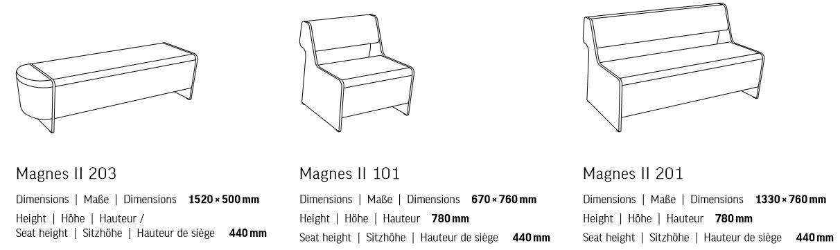 Το Magnes II είναι ένα αρθρωτό σύστημα καθισμάτων ιδανικό για όλους χώρους. Η ευελιξία του συστήματος εξασφαλίζει τη δυνατότητα ελεύθερης ρύθμισης και διαμόρφωσης. Το Magnes II είναι μια τέλεια λύση για εσωτερικούς χώρους διαφόρων τύπων και μεγεθών. Eίναι ένα ευέλικτο σύστημα. Είναι ιδανικό τόσο για μεγάλους χώρους όσο και για μικρούς εσωτερικούς χώρους. Η σειρά Magnes II περιλαμβάνει καθίσματα, τραπέζια, πολυθρόνες και άλλα στοιχεία που μεγιστοποιούν τη λειτουργικότητα του εσωτερικού χώρου με ελάχιστο αριθμό στοιχείων. Η ποικιλία χρωμάτων των υλικών ταπετσαρίας επιτρέπει στους σχεδιαστές εσωτερικών χώρων να πραγματοποιήσουν οποιοδήποτε από τα οράματά τους.